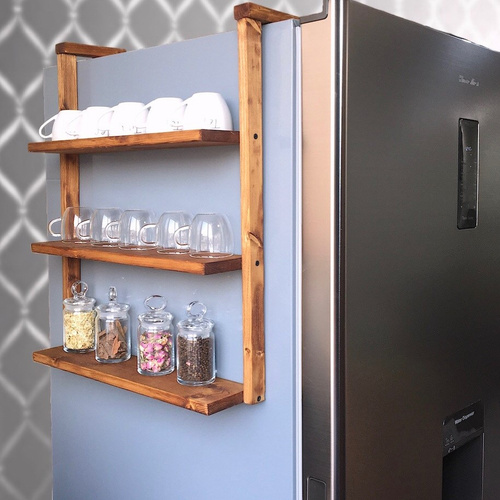 معرفی شلف یخچالی چوبی سه طبقه: دکوراسیون کاربردی و مدرن