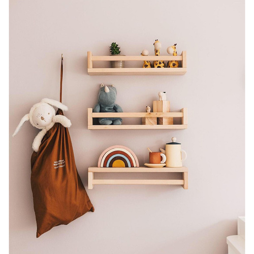 شلف چوبی دیواری سه تایی غراب چوب – دکوراسیون شیک اتاق کودک و منزل